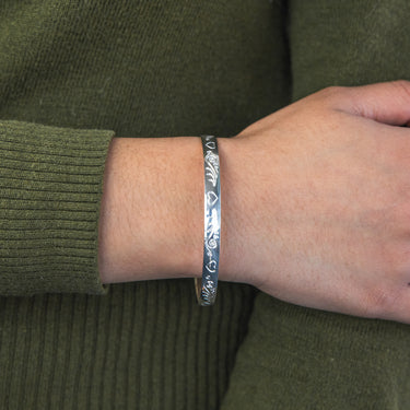 You’ll find an array of designs, from sleek open cuffs to intricately detailed bangles with textured finishes or embellishments. Some feature smooth, clean lines for a modern feel, while others incorporate engraved patterns or delicate motifs for added personality. If you love a coordinated look, style your bangle with matching pieces from our silver necklaces or silver earrings collections.