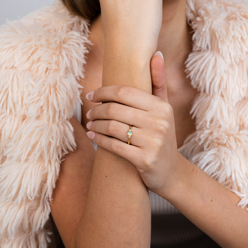 0.17 Carat Opal and Diamond Ring in 9ct Yellow Gold