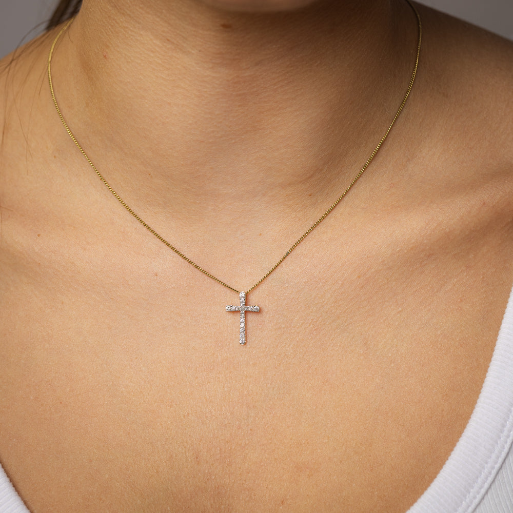 0.27 Carat Diamond Cross Pendant in 9ct Yellow Gold