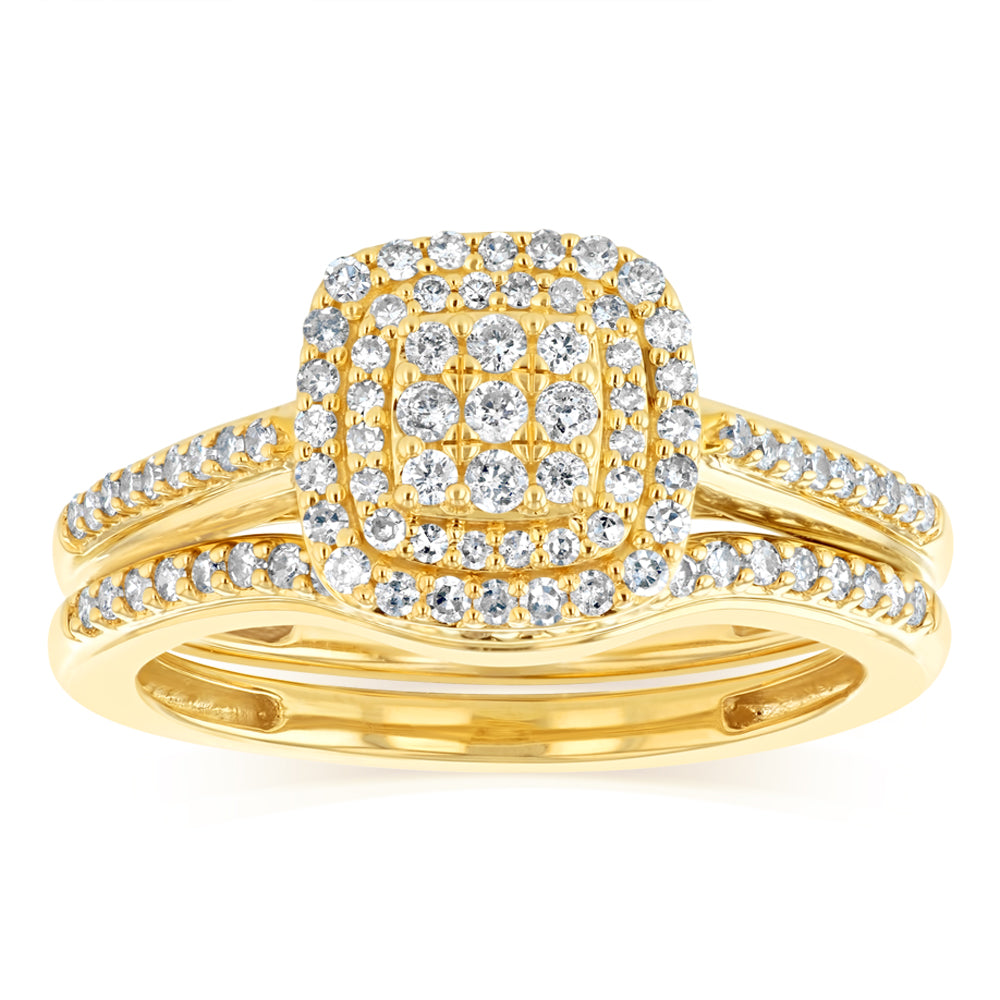 0.33 Carat Natural Diamond 2 Ring Bridal Set in 9ct Yellow Gold