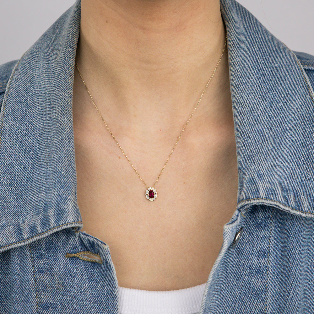 0.50 Carat Created Ruby Oval and Diamond Pendant with 45cm Chain in 9ct Yellow Gold