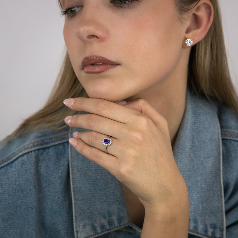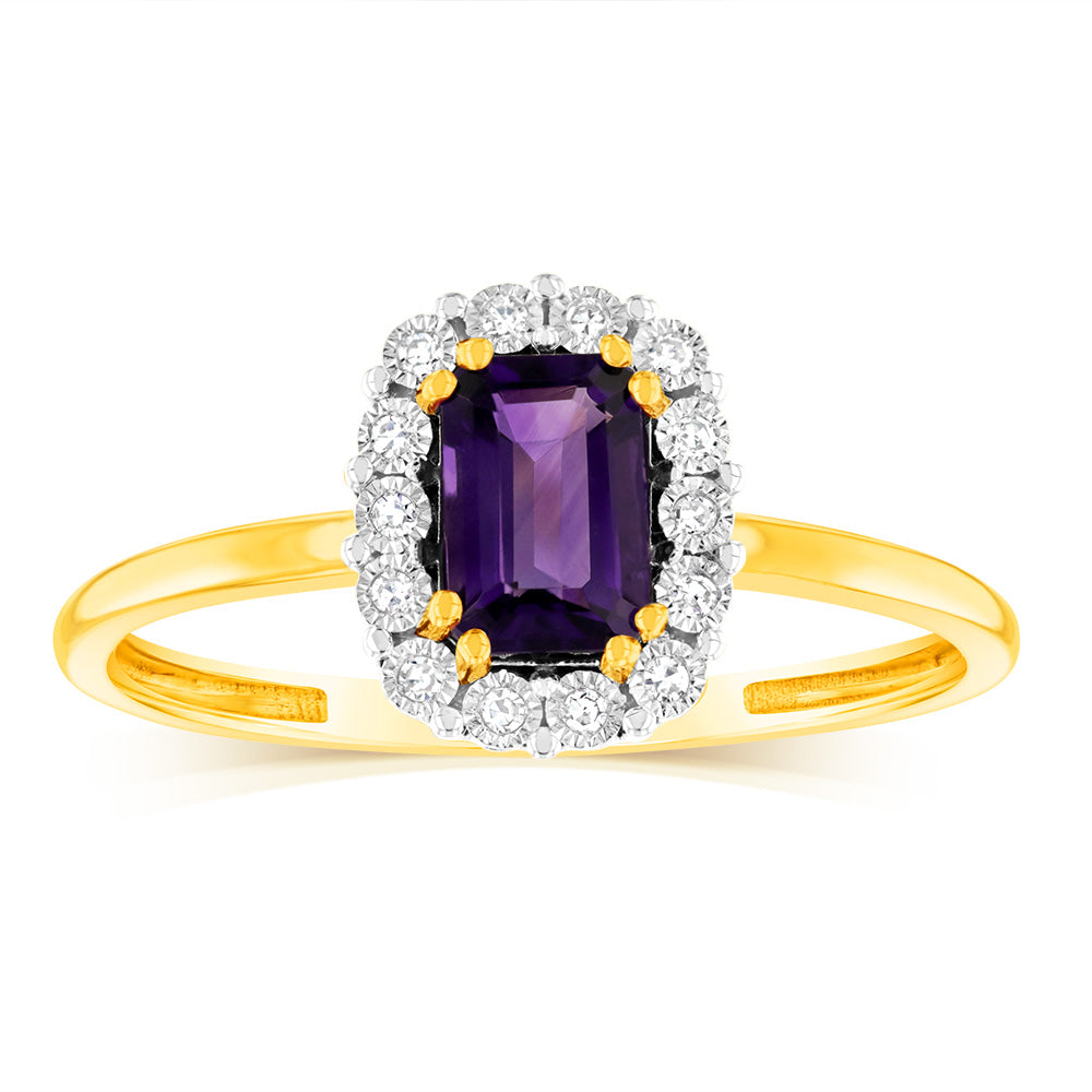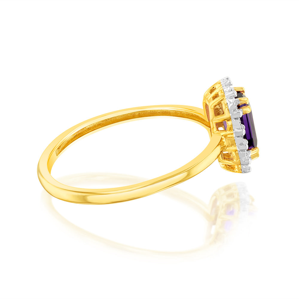 0.54 Carat Amethyst and Diamond Ring in 9ct Yellow Gold