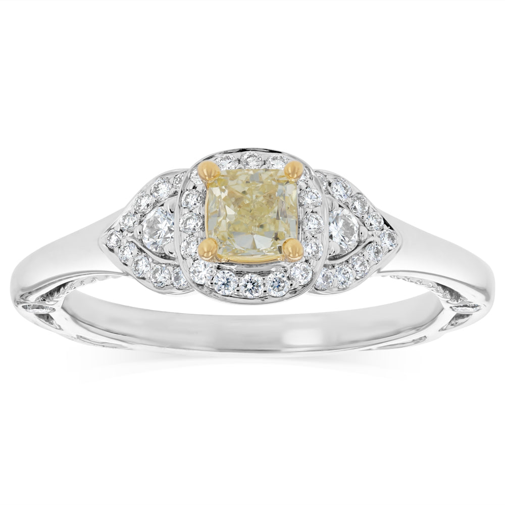 0.70 Carat Diamond Ring with Yellow Cushion Diamond in 18ct Yellow and White Gold