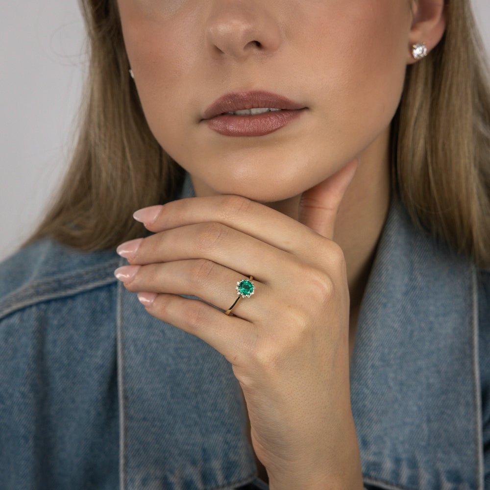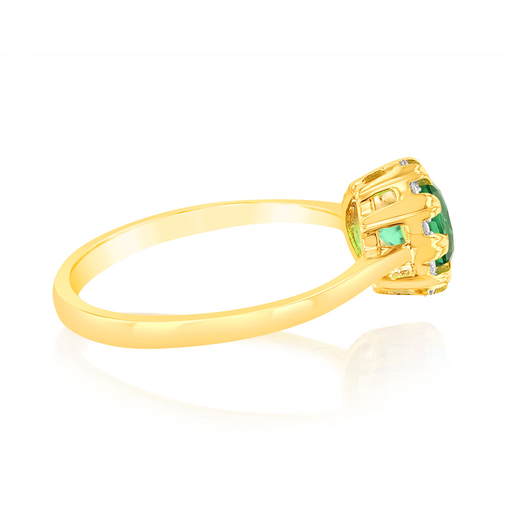 0.87 Carat Created Emerald and Diamond Ring in 9ct Yellow Gold
