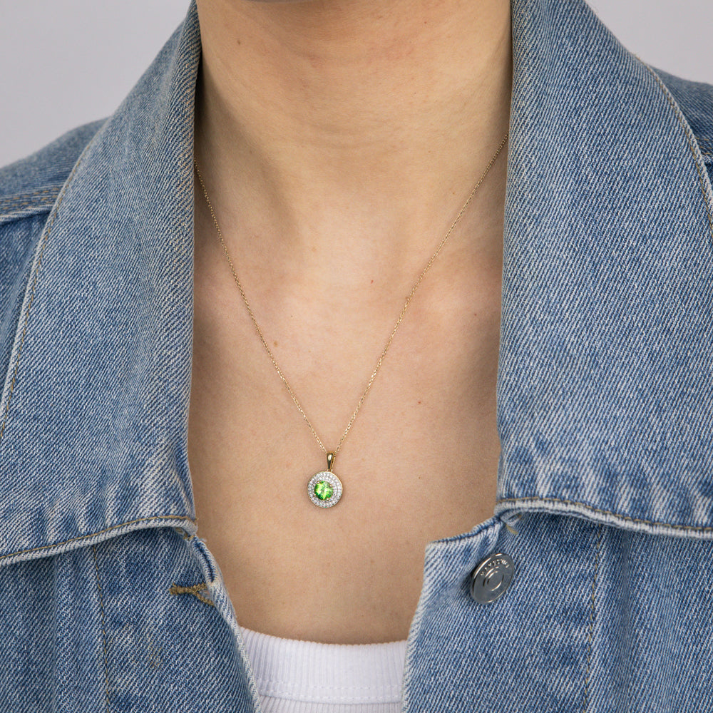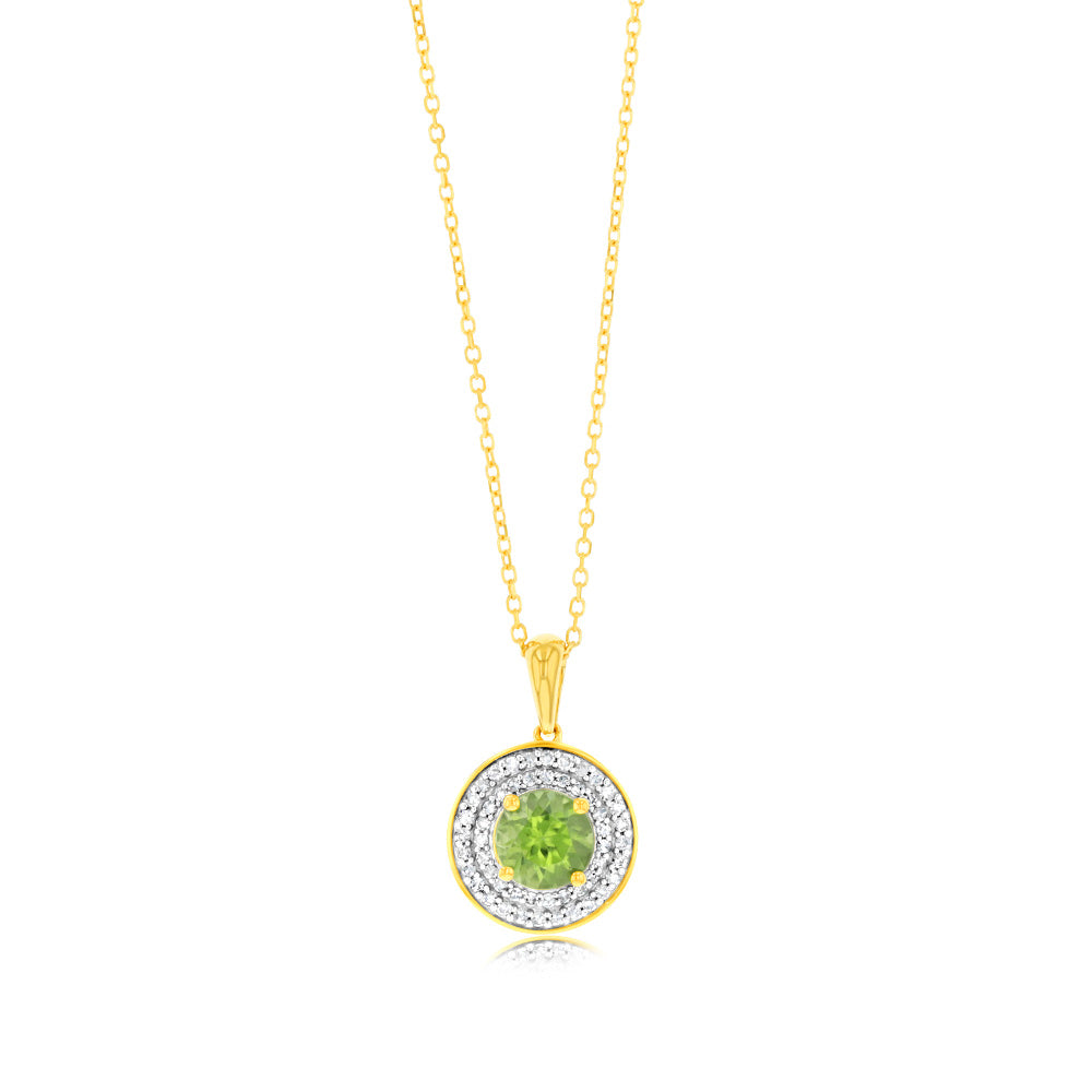 0.87 Carat Peridot and Diamond Pendant with 45cm Chain in 9ct Yellow Gold