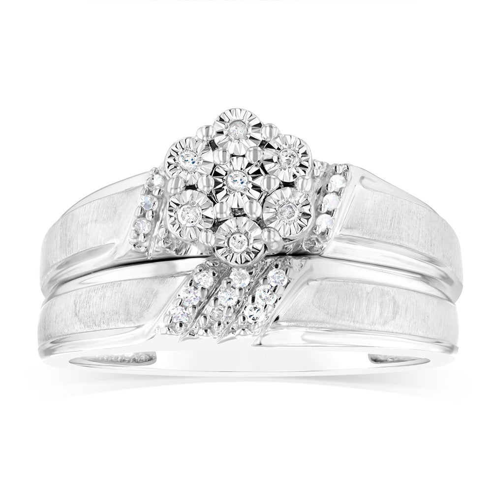 1/10 Carat Diamond 2 Ring Bridal Set in Sterling Silver