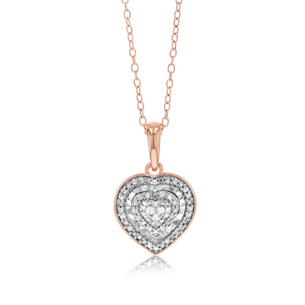 1/10 Carat Diamond Heart Pendant in Rose Gold Plated Silver on 45cm Chain
