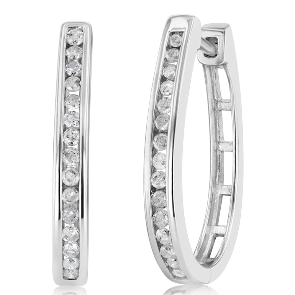 1/2 Carat Diamond Hoop Earrings in Sterling Silver