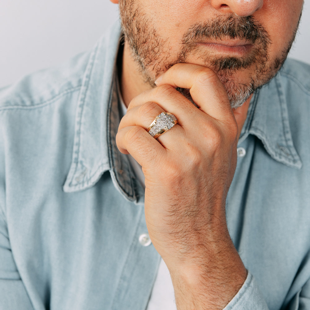 1/4 Carat Diamond Men's Ring with 32 Round Diamonds in 9ct Yellow Gold