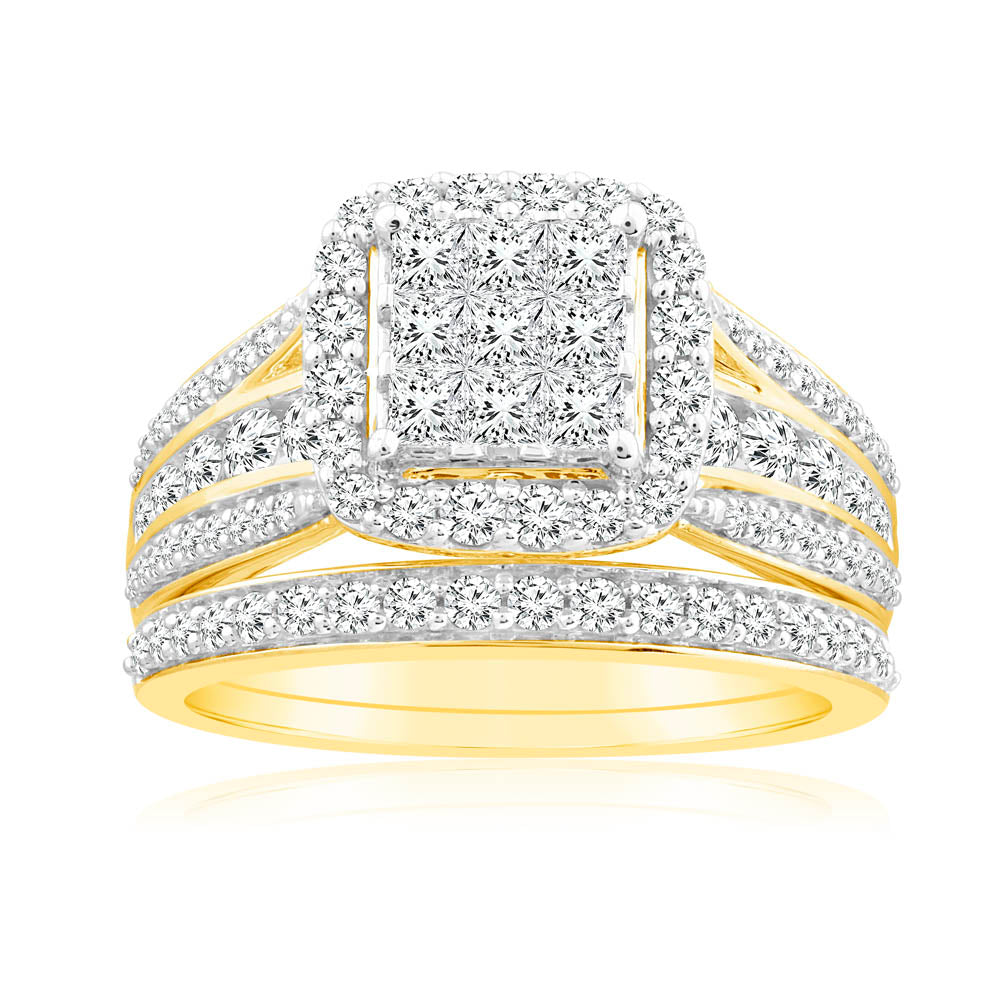1.40 Carat Diamond Cushion Shape Bridal Set in 10ct Yellow Gold
