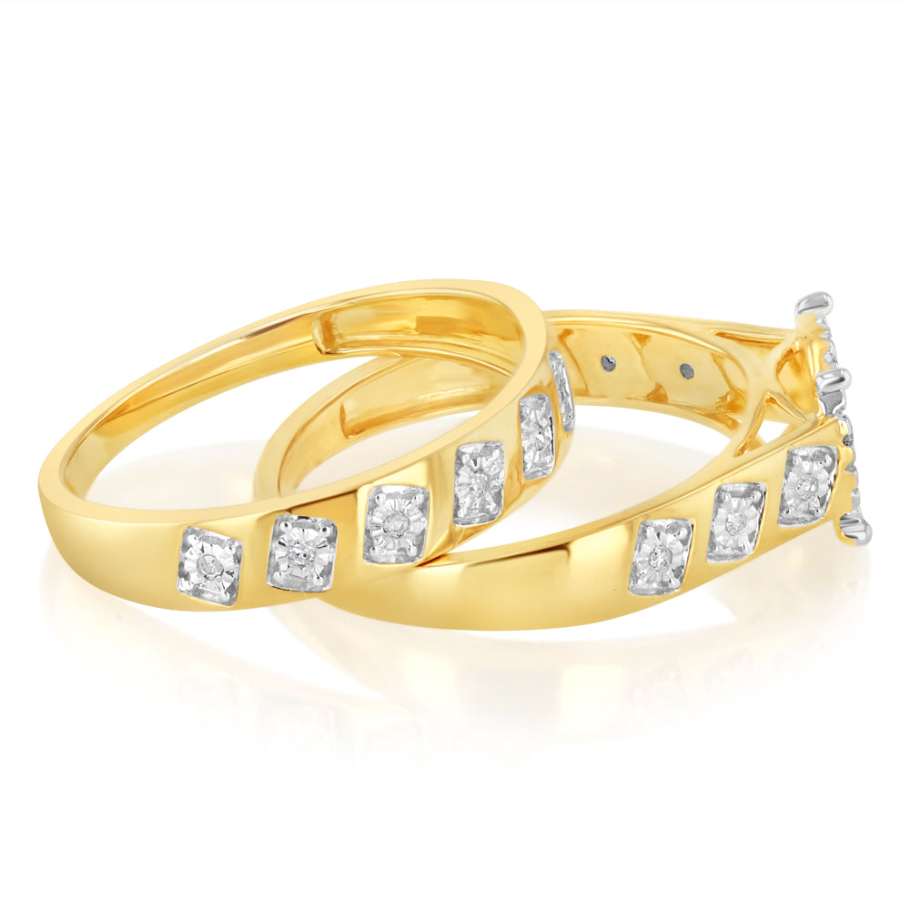 1/5 Carat Diamond 2-Ring Bridal Ring Set in 9ct Yellow Gold