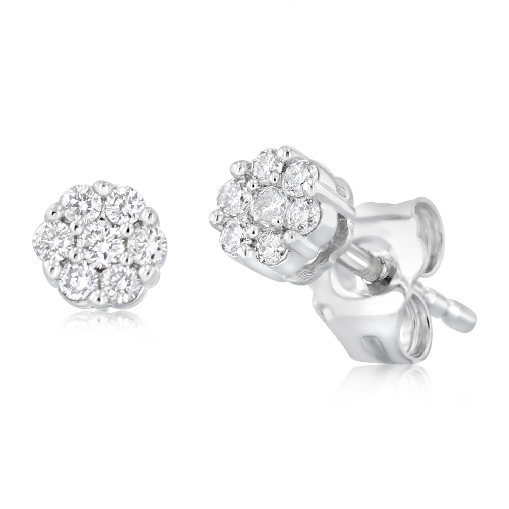 1/6 Carat Diamond Flower Stud Earring in 10ct White Gold