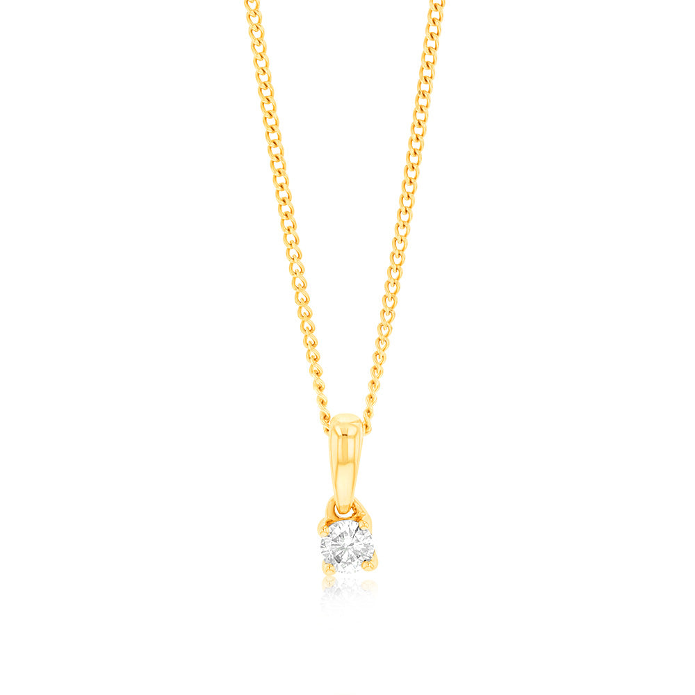 1/6 Carat Diamond Solitaire Pendant in 9ct Yellow Gold