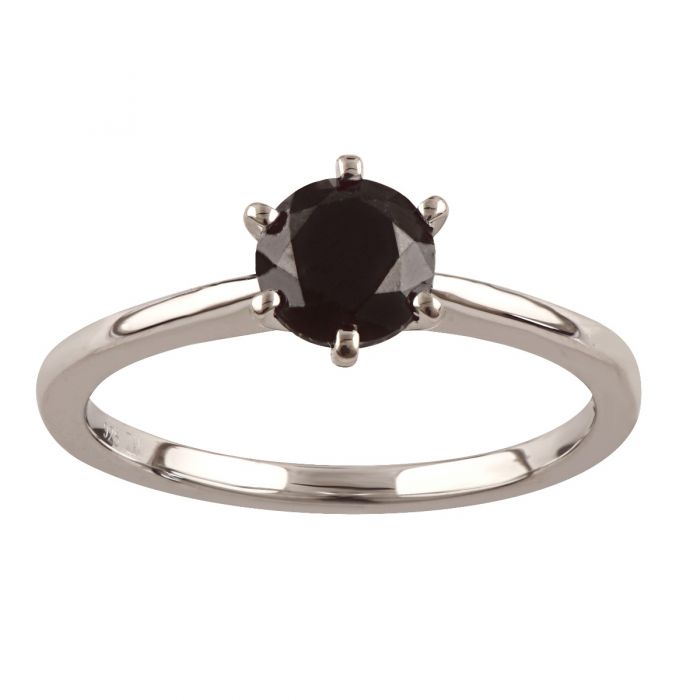 1 Carat Black Diamond Solitaire Ring set in Sterling Silver