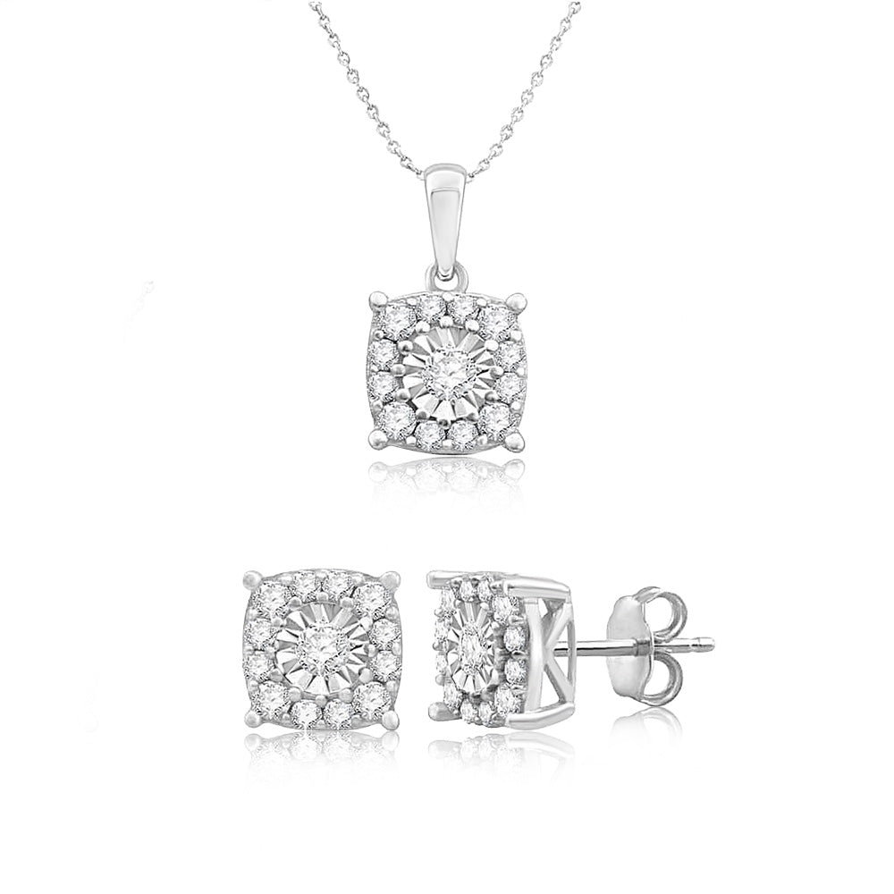 1 Carat Diamond Earrings and Pendant Set on 45cm Chain in Sterling Silver