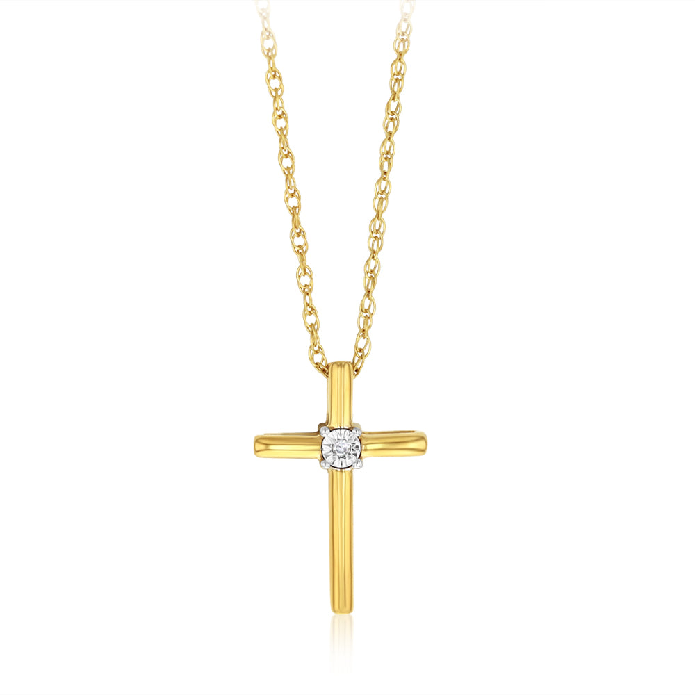 1 Diamond Cross Pendant on 45cm Chain in Gold Plated Silver
