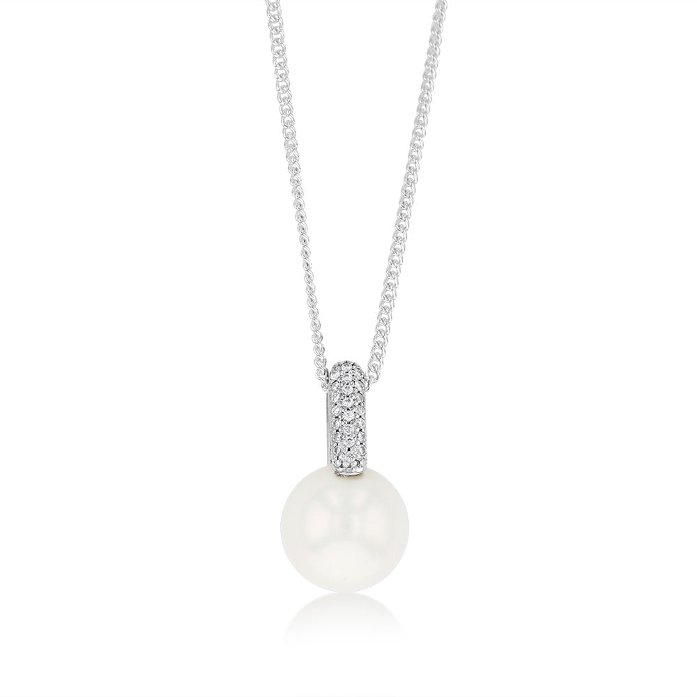 10-12mm White South Sea Pearl Pendant with Pave Zirconia Bale on 45cm Chain in Sterling Silver