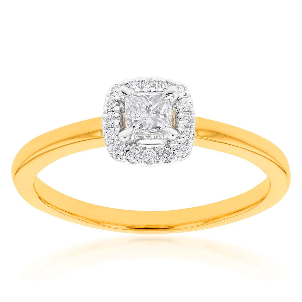 10 Carat 20 Point Diamond Ring with Princess Centre and Halo