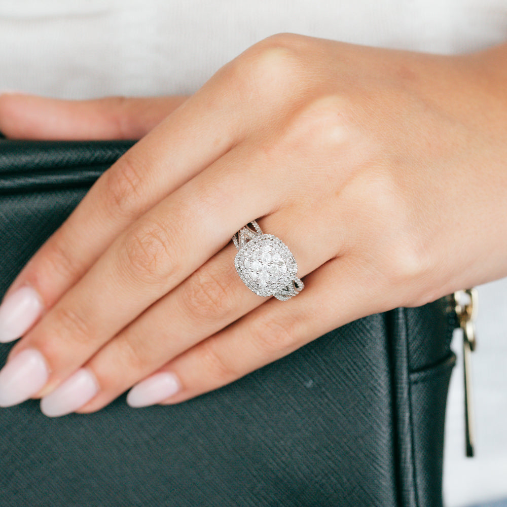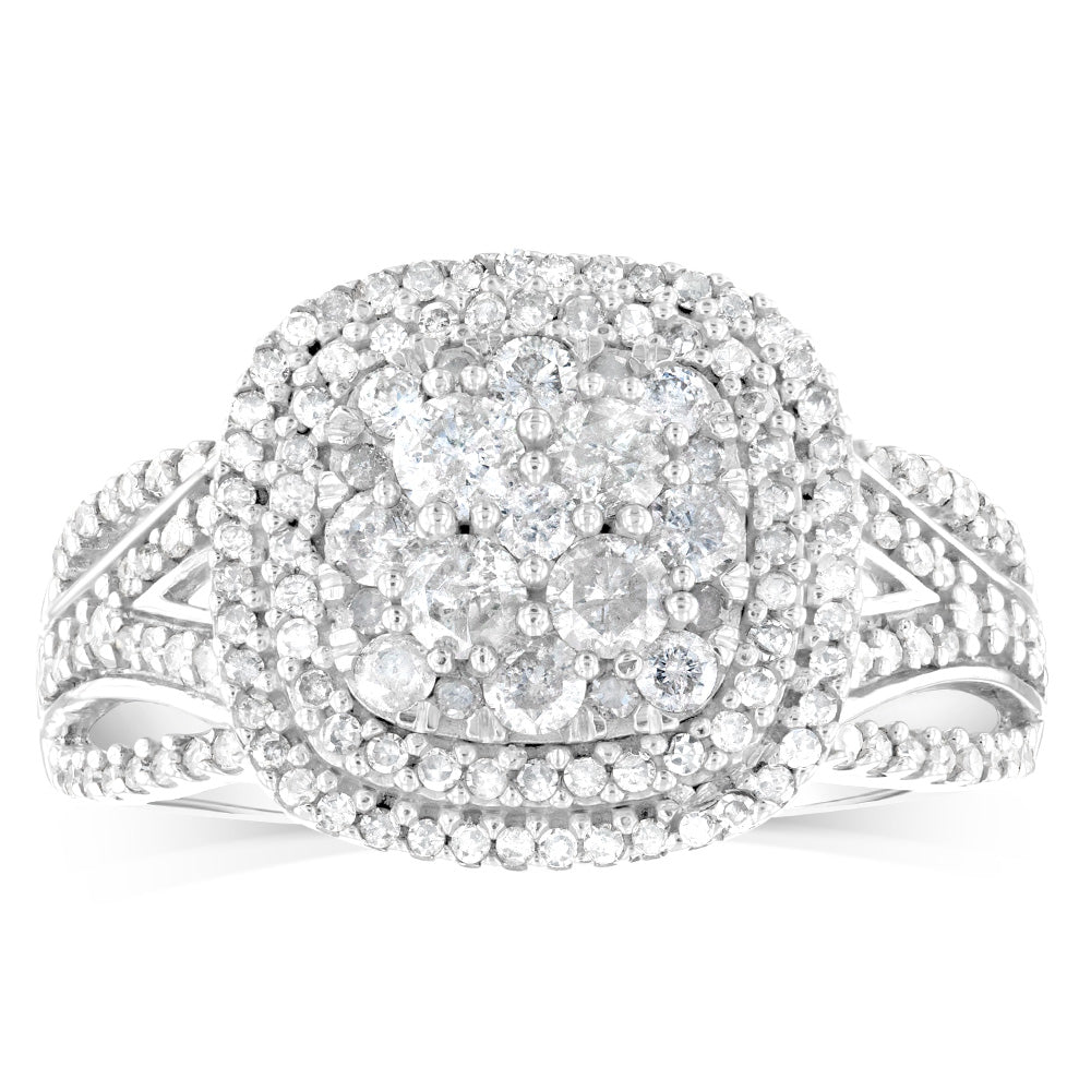 10ct White Gold 0.95 Carat Diamond Cluster Ring