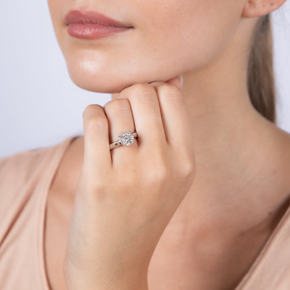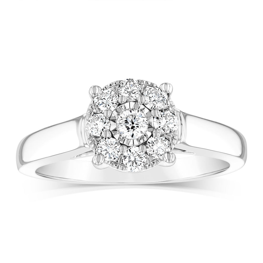 10ct White Gold 1/3 Carat Diamond Halo Solitaire Ring