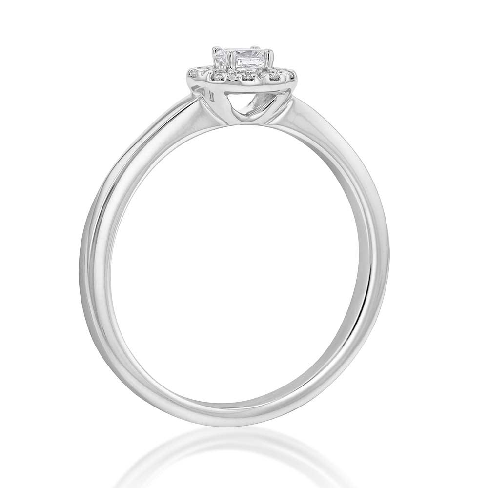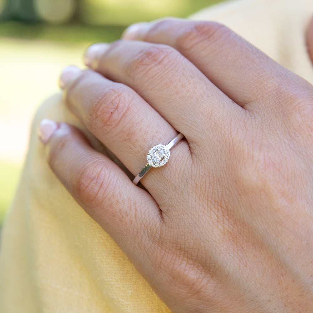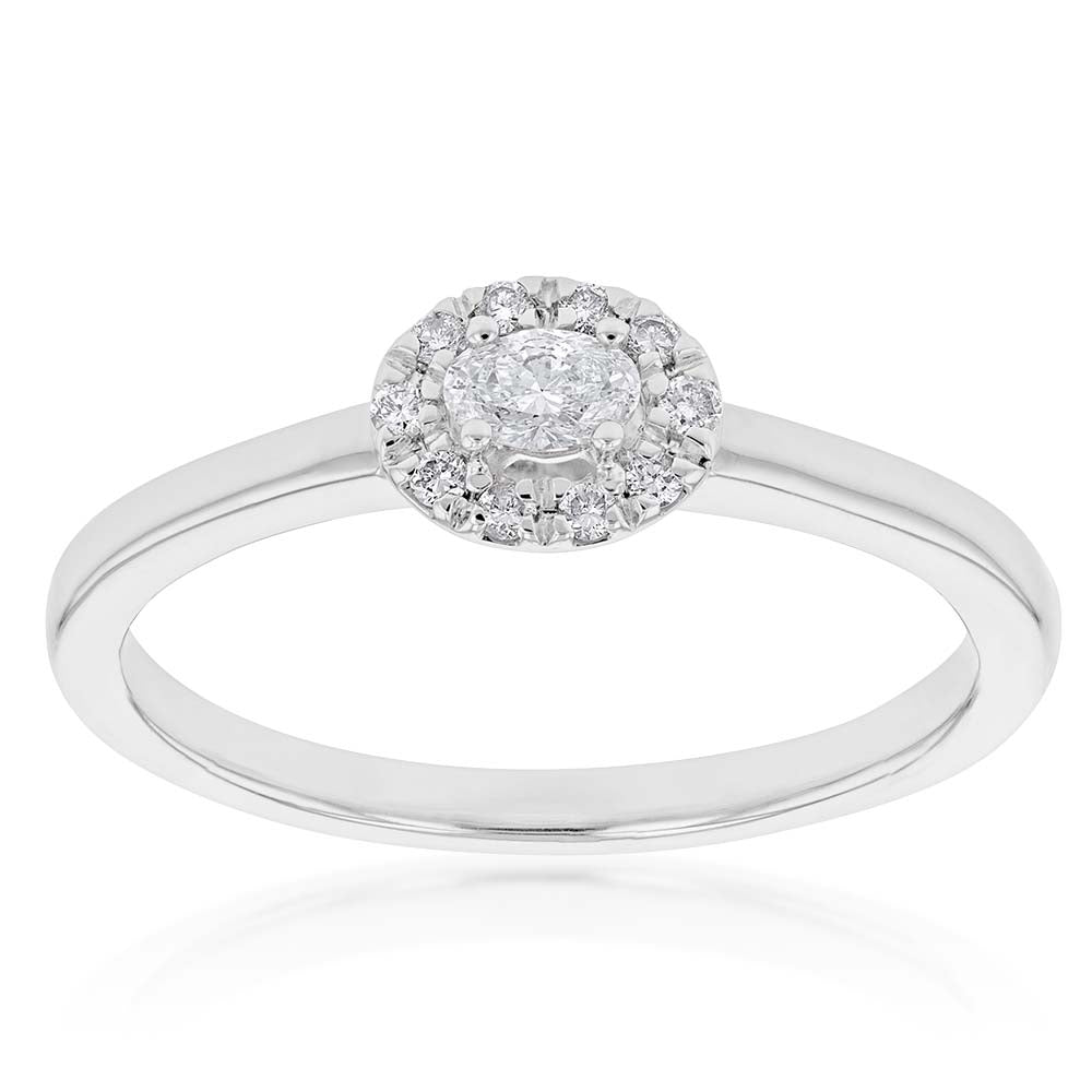 10ct White Gold 1/6 Carat Diamond Ring with Oval Centre and Halo