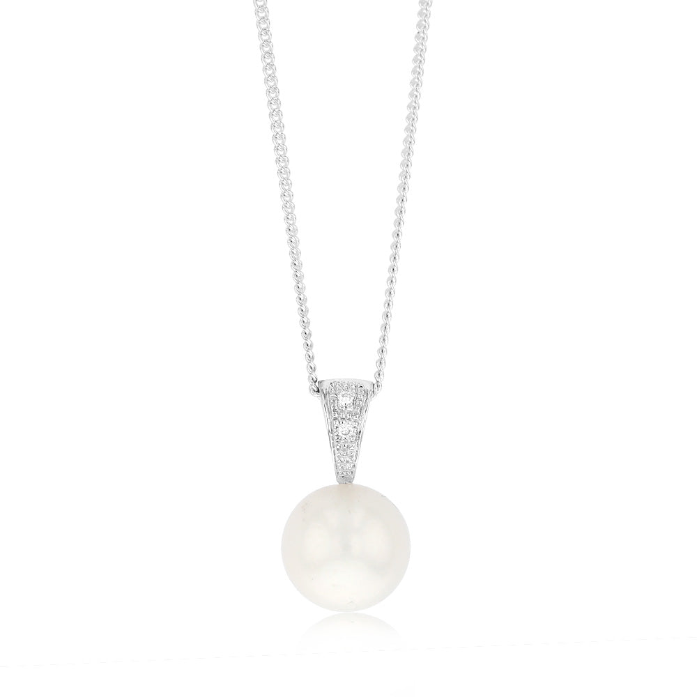 11-12mm White South Sea Pearl and Diamond Pendant on 45cm Chain in Sterling Silver