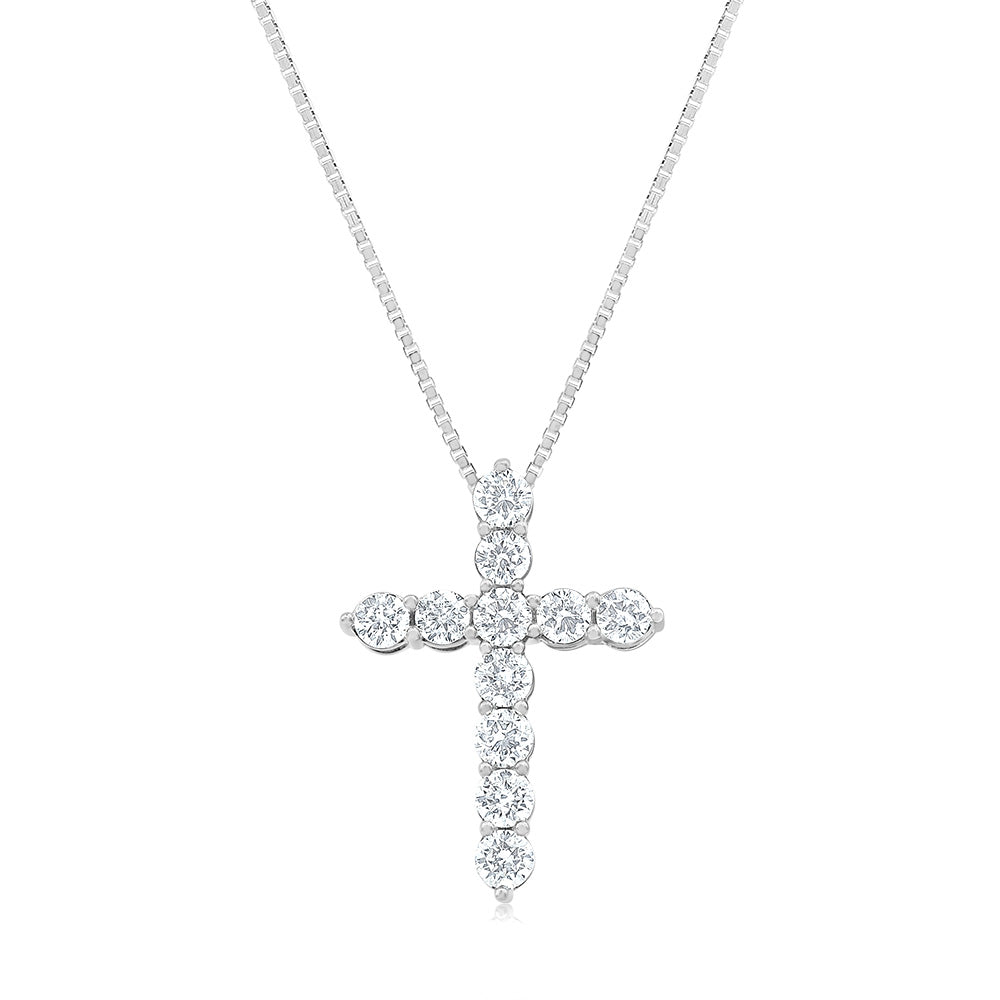 14ct White Gold 1.90 Carat Diamond Cross Pendant with Round Brilliant Cut Diamond on 45cm Chain