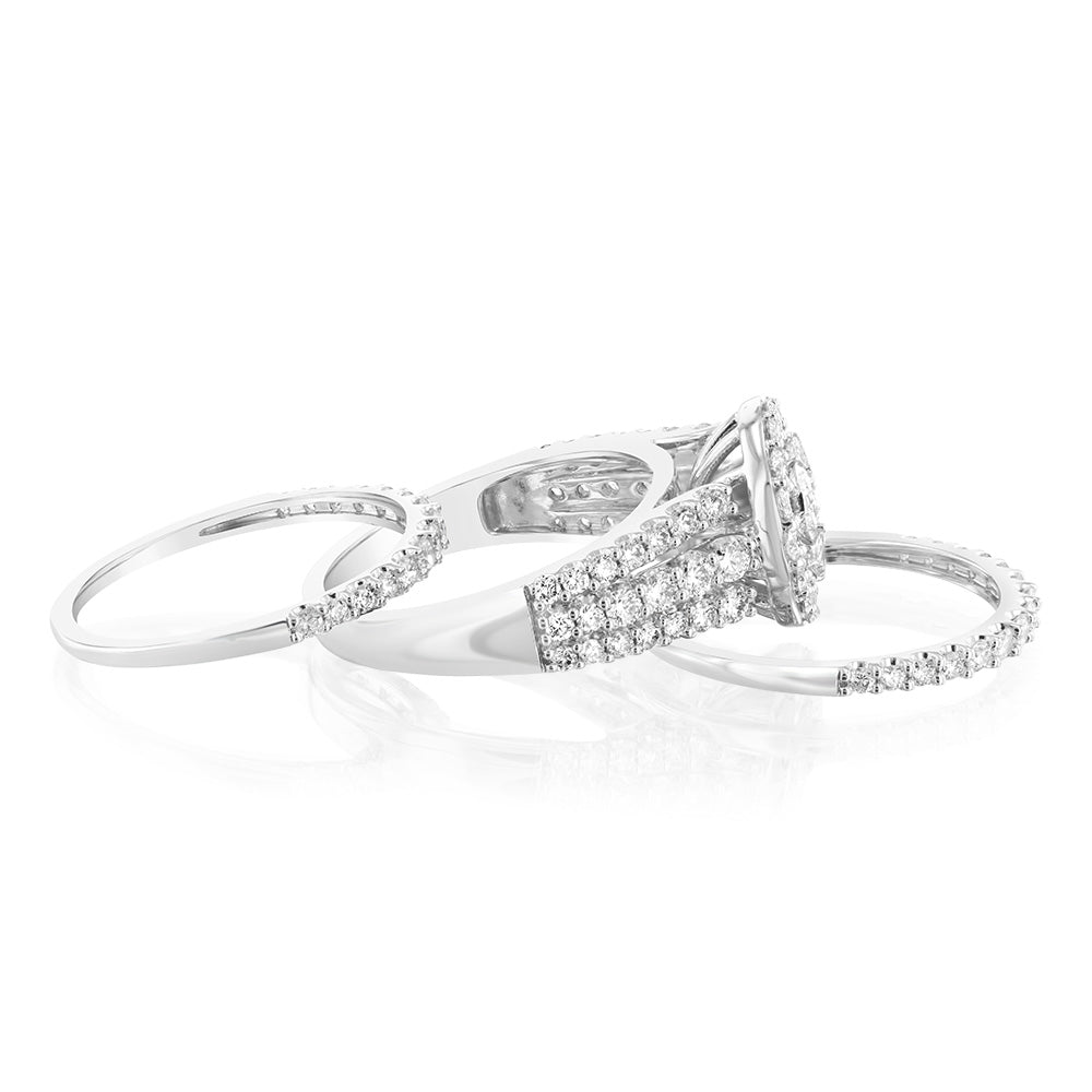 14ct White Gold 1.95 Carat Diamond Halo Bridal 3 Ring set with Brilliant Cut Diamonds