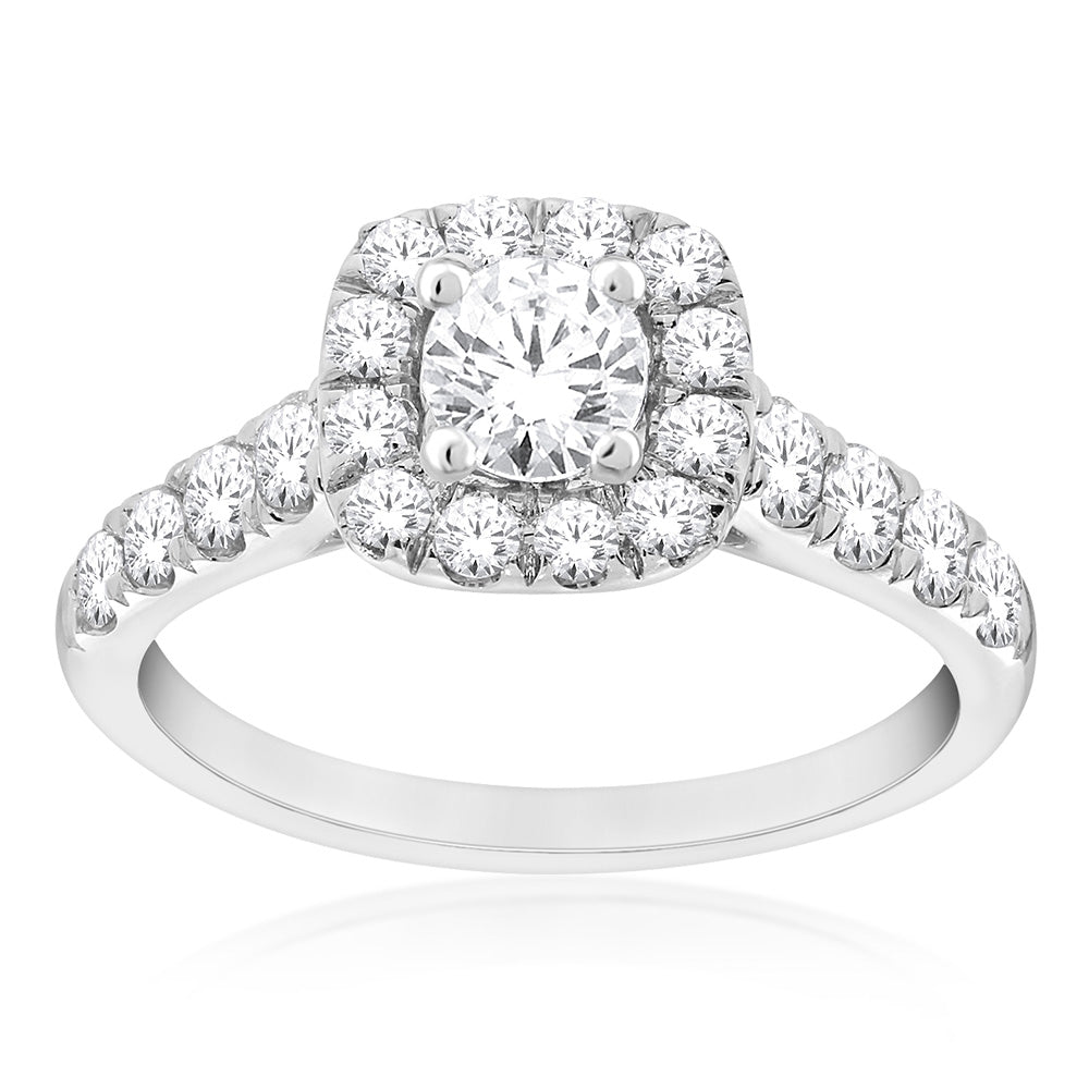 14ct White Gold 1 Carat Diamond Halo Ring