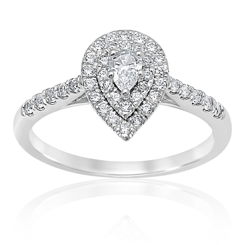 18ct White Gold 1/2 Carat Pear Diamond Halo Ring
