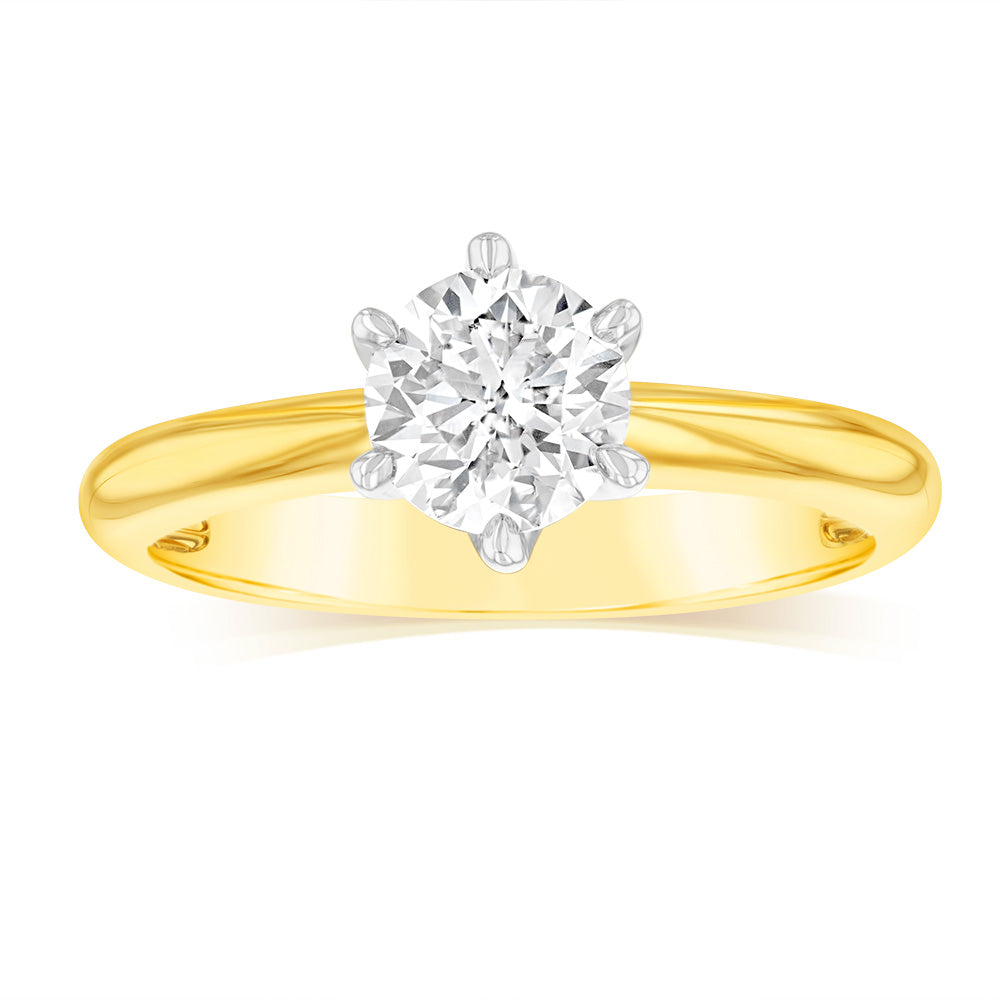 18ct Yellow Gold 0.80 Carat Diamond Solitaire Ring with 6 Claw Knife Edge Setting