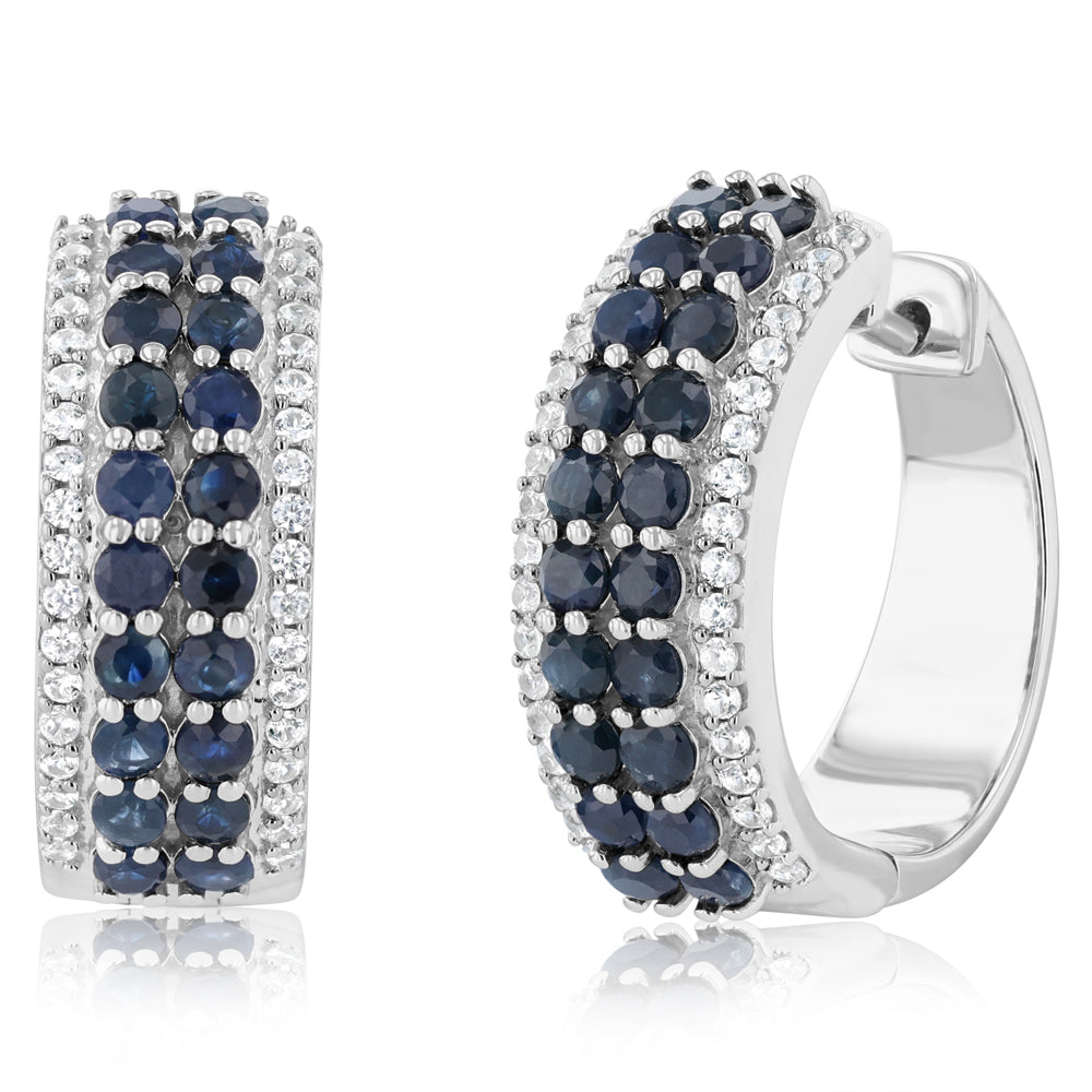 3.20 Carat Natural Blue Sapphire and White Cubic Zirconia Hoop Earring in Sterling Silver