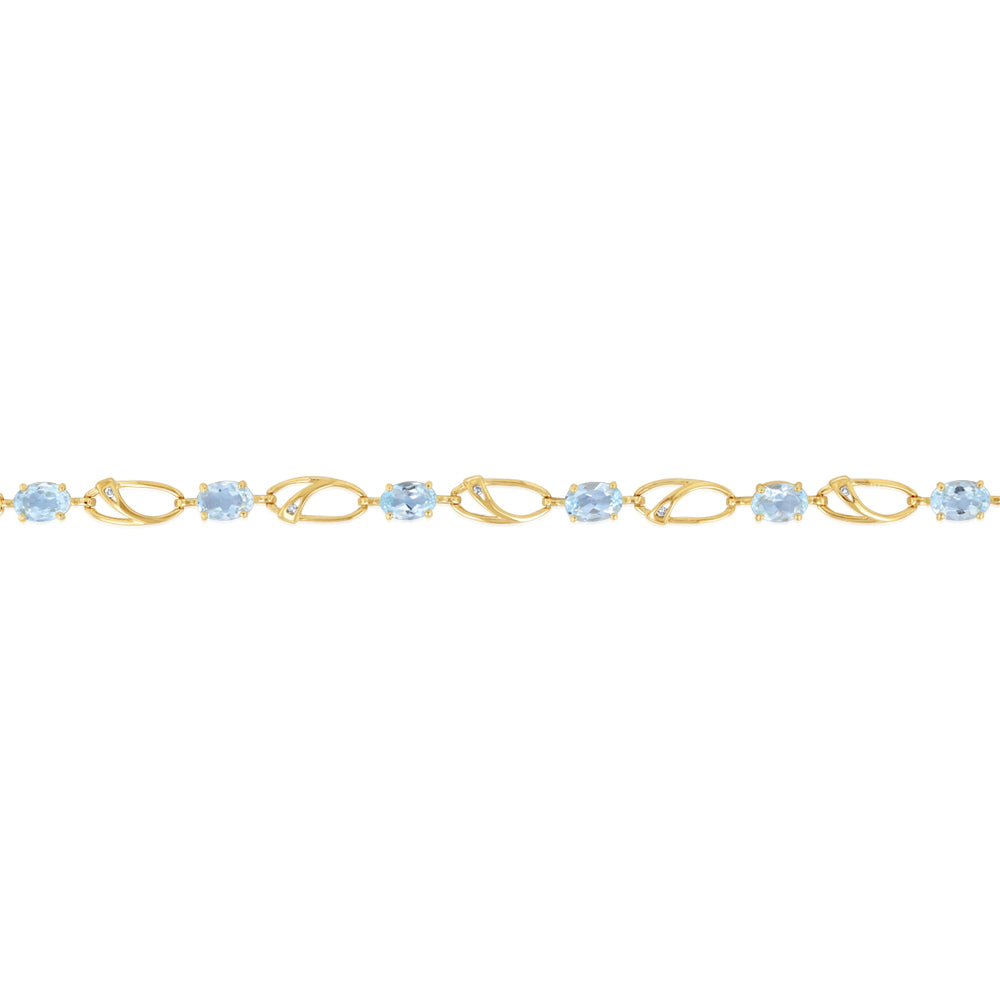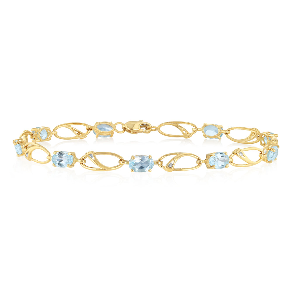 4.87 Carats Blue Topaz & Diamond Bracelet 18cm in 9ct Yellow Gold
