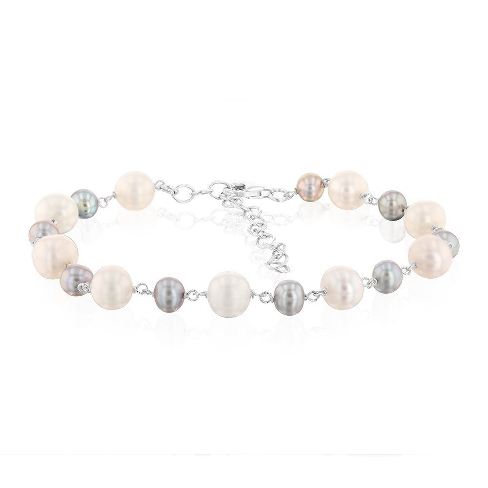 5-8mm Fresh Water White & Grey Pearl Bracelet in Sterling Silver