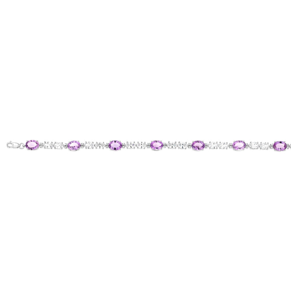7 Amethyst & 35 Cubic Zirconia Bracelet in Sterling Silver