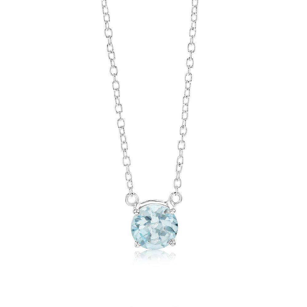 7mm Natural Blue Topaz Pendant in Sterling Silver with Chain