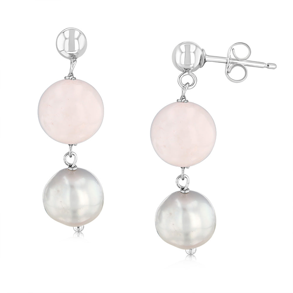 8-9mm Fresh Water Grey Pearl Drop Earrings in Sterling Silver