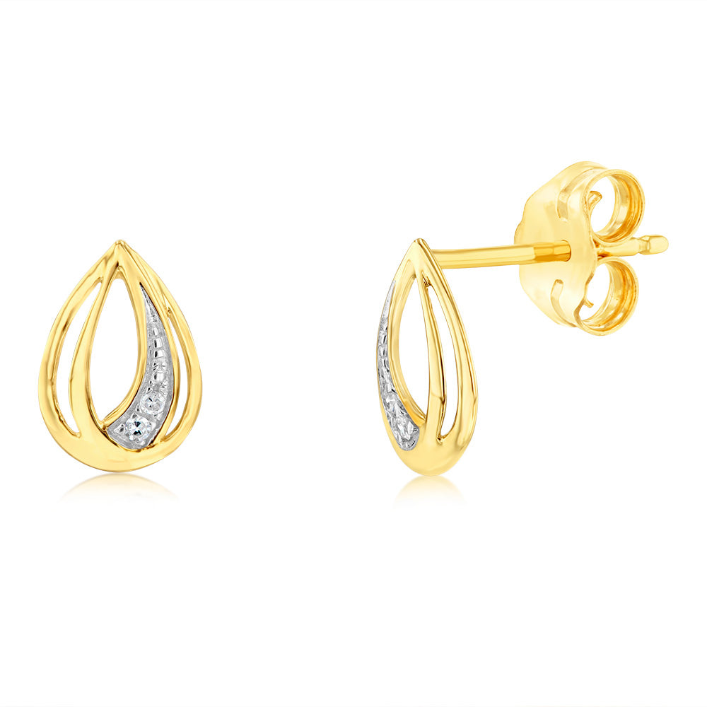 8 Diamonds Stud Earrings in 9ct Yellow Gold