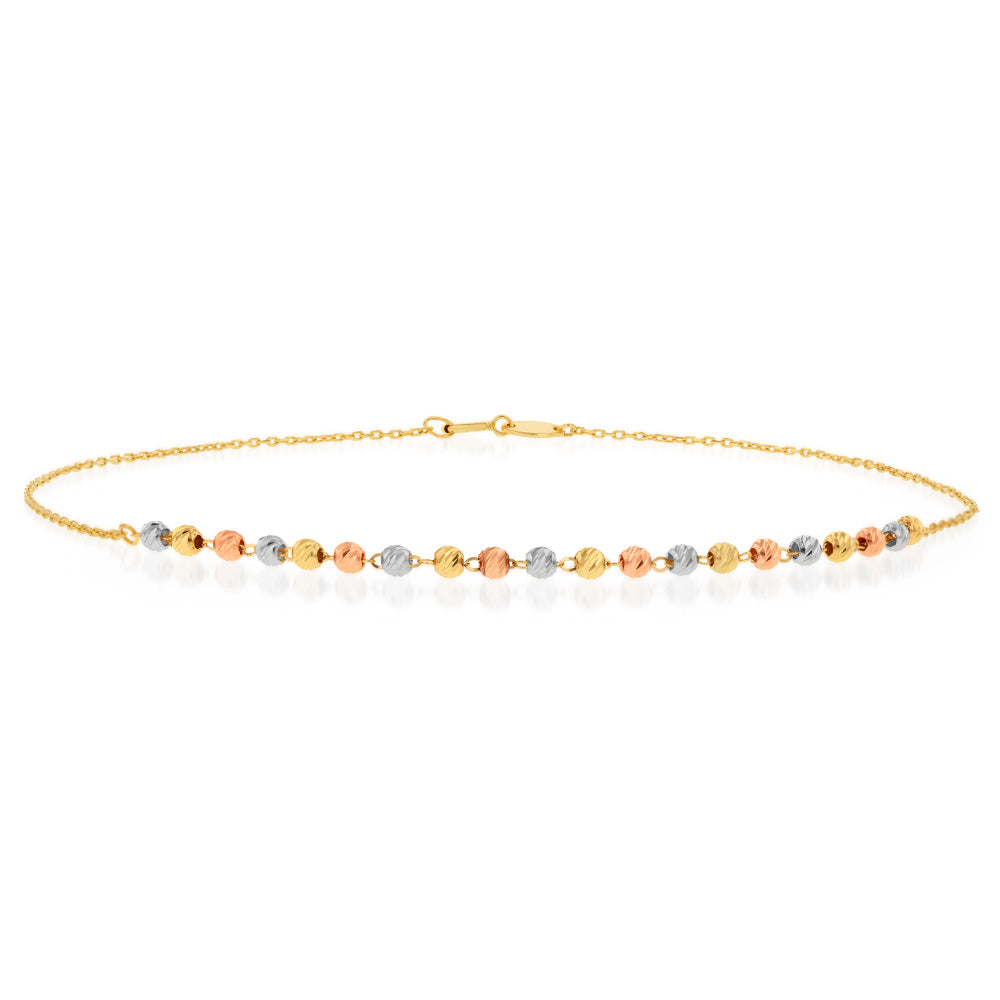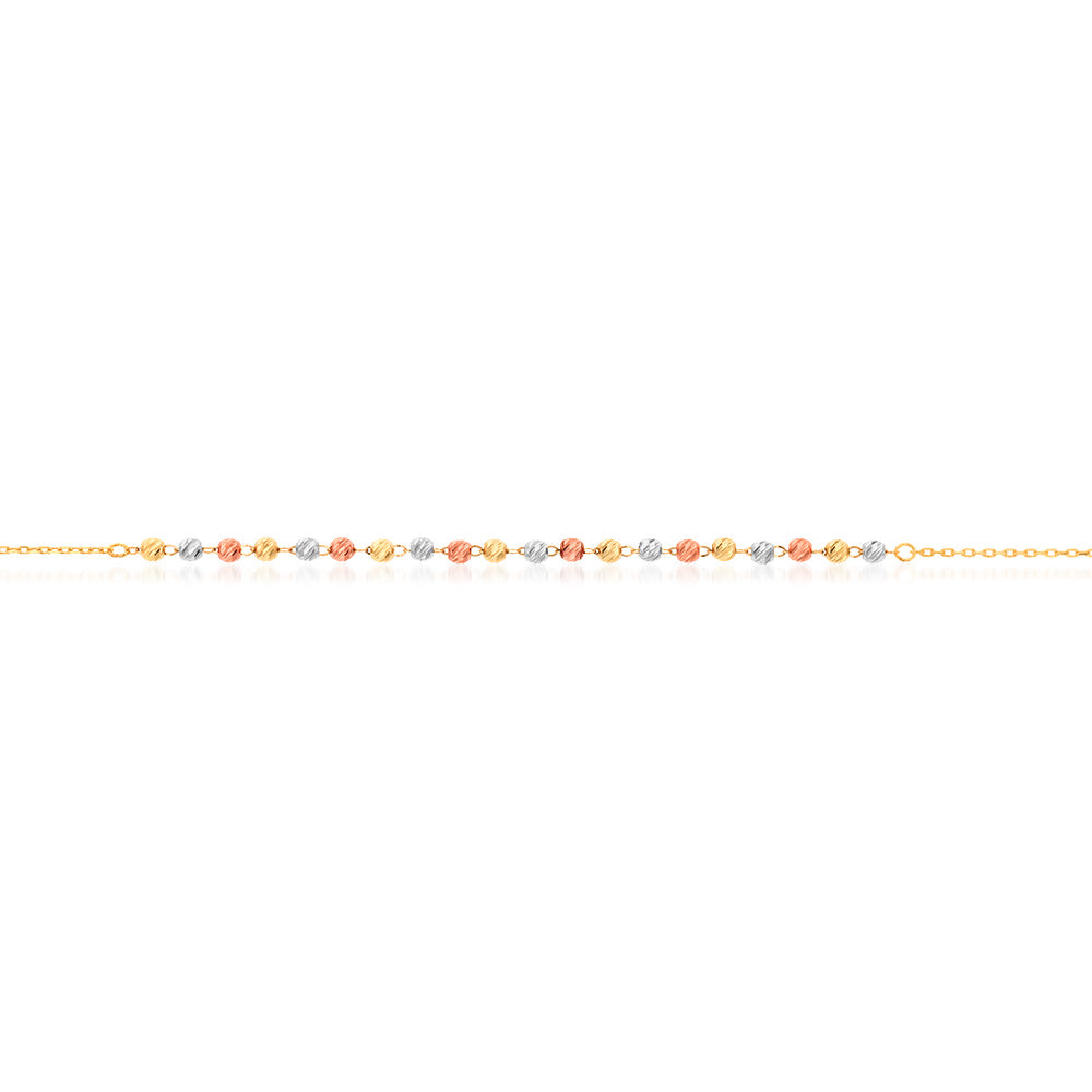 9ct 3-Tone Yellow White Rose Gold Beaded 27cm Anklet