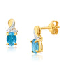 9ct Alluring Yellow Gold Blue Topaz + Diamond Stud Earrings