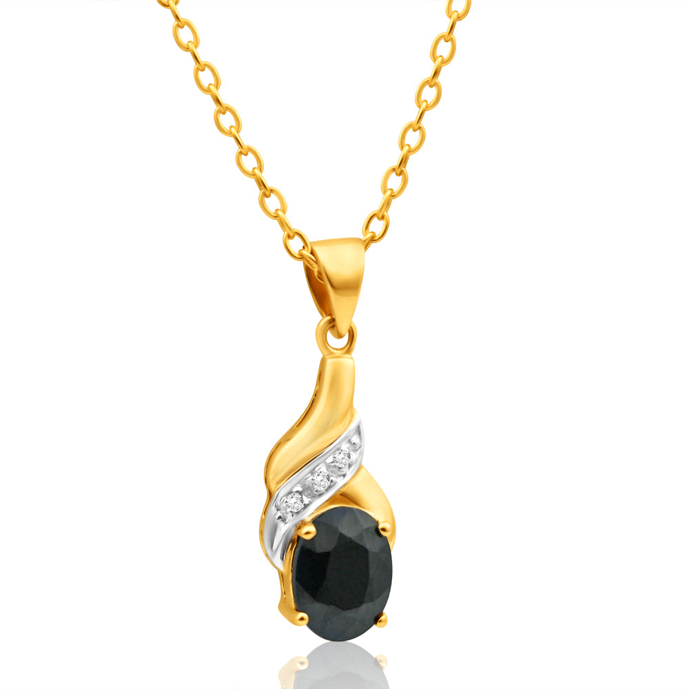 9ct Charming Yellow Gold Natural Black Sapphire 8x6mm and Diamond Pendant