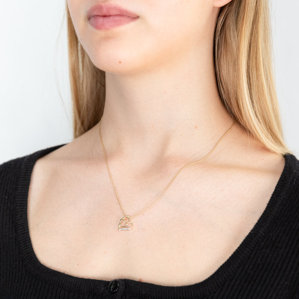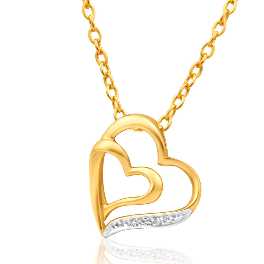 9ct Elegant Yellow Gold 2 Diamonds Heart Pendant
