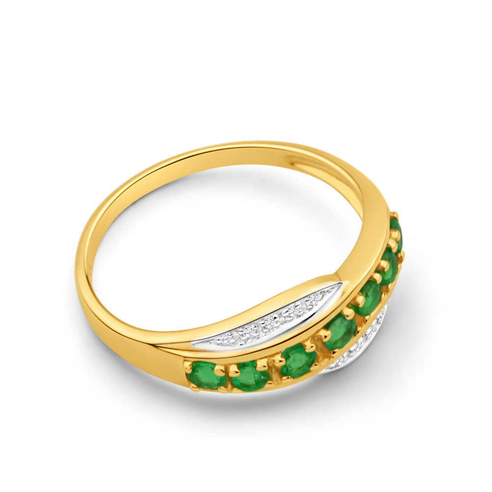 9ct Elegant Yellow Gold Diamond + Emerald Ring