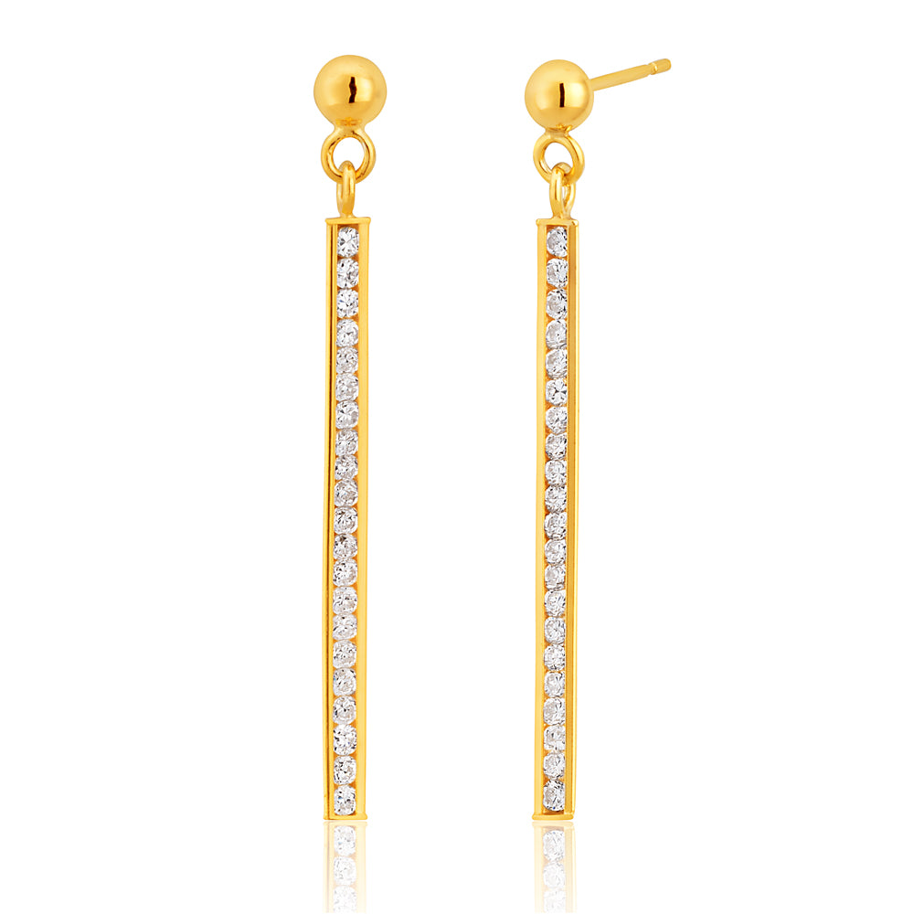 9ct Gold Cubic Zirconia Silver Filled Bar Drop Earrings