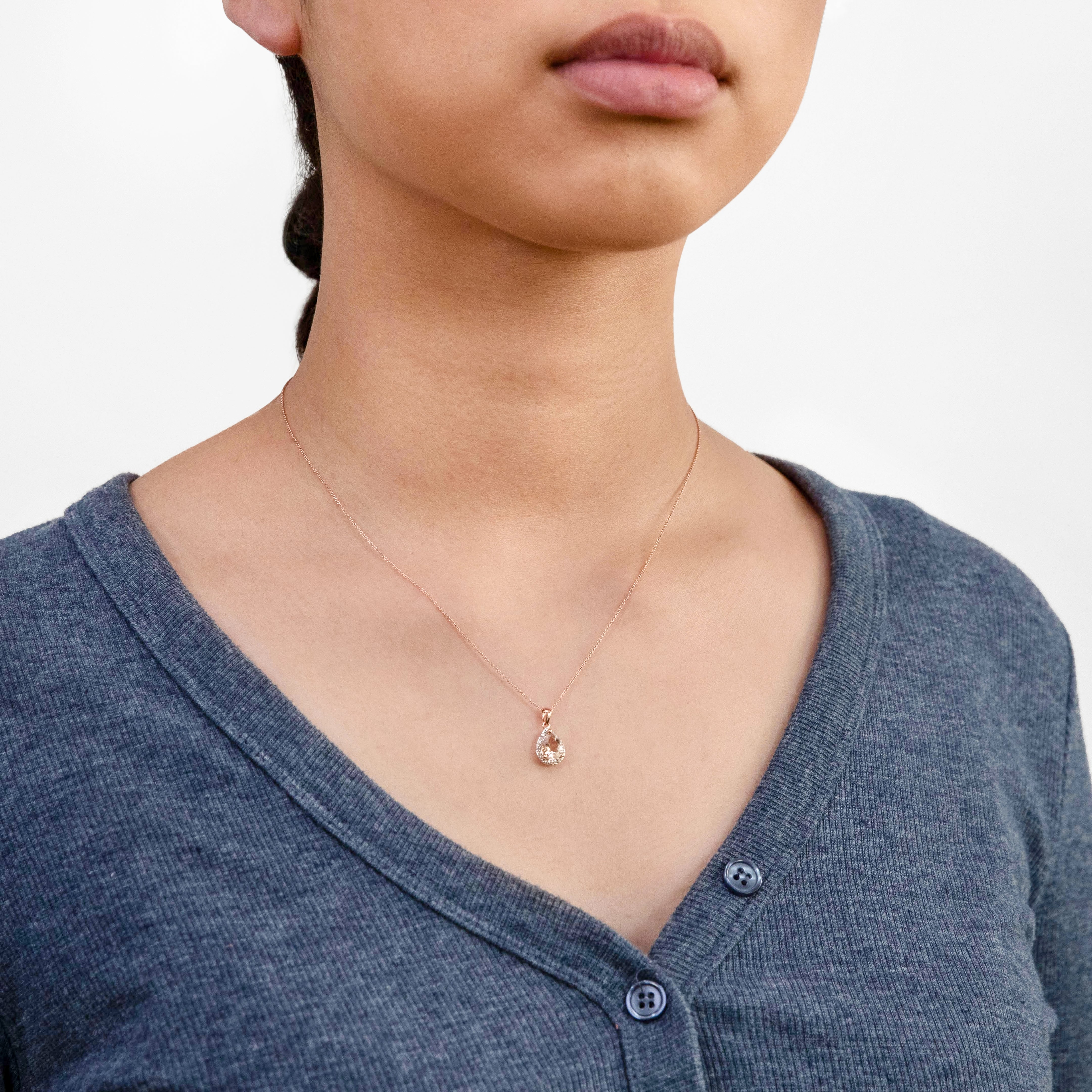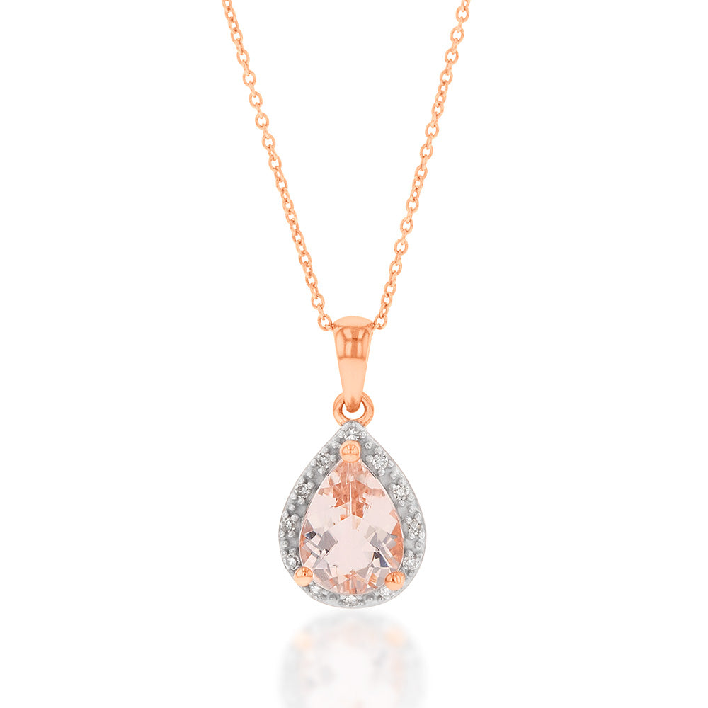9ct Rose Gold 1.00ct Morganite 8x6mm Pear & Diamond Pendant with 45cm Chain