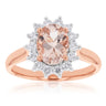 9ct Rose Gold 1.50ct Morganite and 0.50ct Diamond Halo Ring