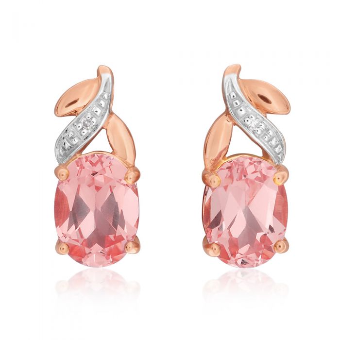 9ct Rose Gold Created Peach Sapphire & Diamond Studs