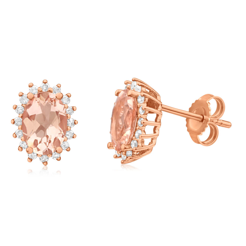 9ct Rose Gold Diamond + 7x5mm Morganite Cluster Stud Earrings