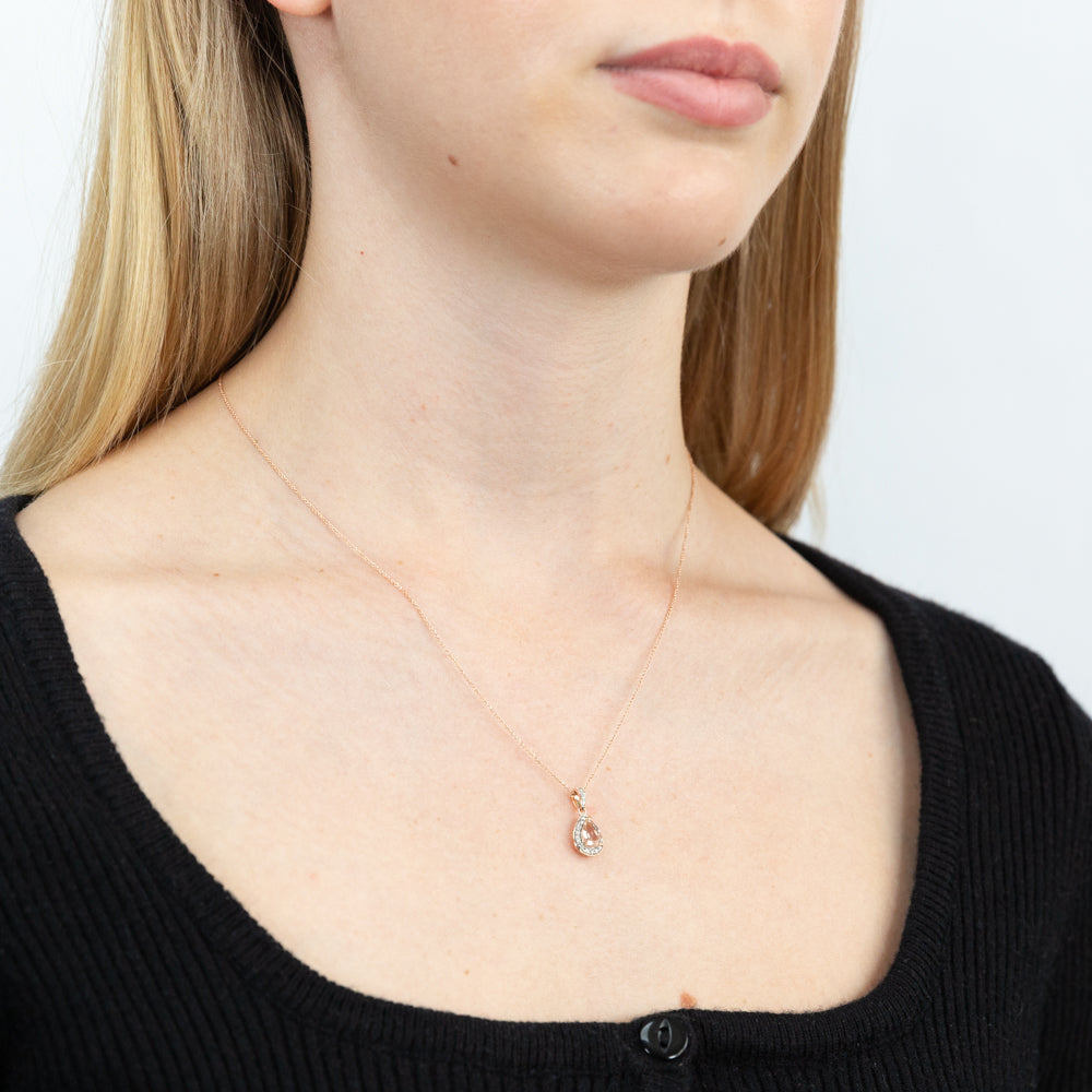 9ct Rose Gold Morganite Pear and 0.15 Carat Diamond Pendant on 45cm Chain
