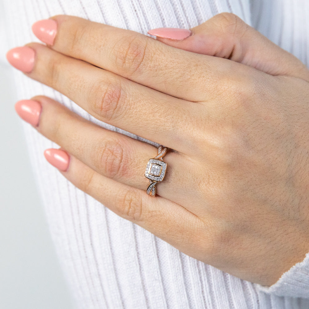 9ct Rose Gold Ring With 21 Brilliant Cut Diamonds